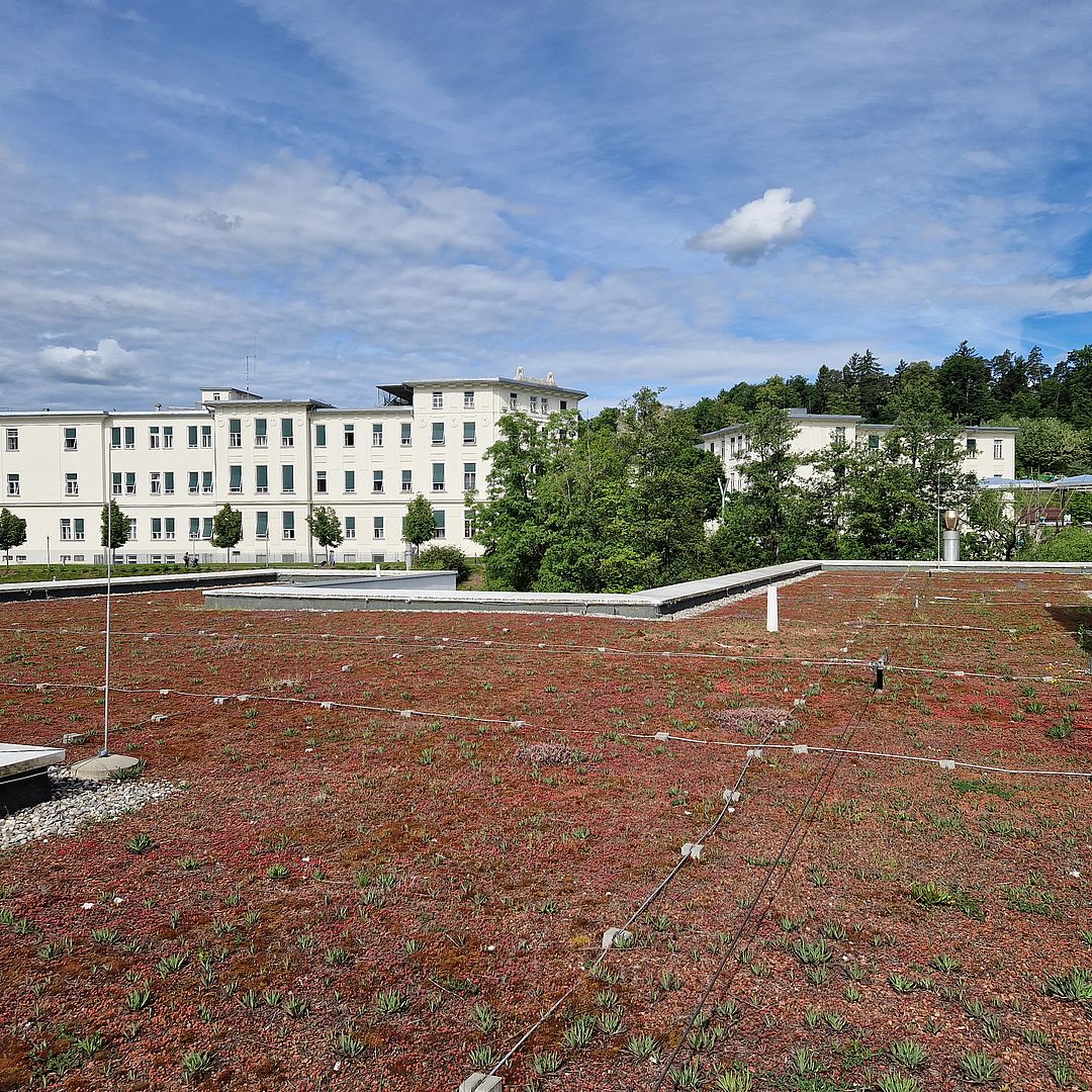 Der Titel des prĂ€mierten Projekts ist Programm: 9.000 m2 der DachflĂ€chen am Uniklinikum Graz sind begrĂŒnt wurden im Rahmen des Projekts systematisch erfasst und klare Ziele fĂŒr deren Funktion hinsichtlich Klimawandelanpassung, BiodiversitĂ€t, ErholungsqualitĂ€t sowie fĂŒr ihr Erscheinungsbild definiert. „So entstand ein einheitliches Bild der begrĂŒnten DachflĂ€chen, dessen Wirkung wir nun gezielt und langfristig sicherstellen können. Im Zuge dessen wurde u. a. auch definiert, wie diese FlĂ€chen zu pflegen sind und die Mitarbeiter*innen dafĂŒr entsprechend geschult“, erlĂ€utert Christian Sixt. Als konkrete Effekte im (Klinik-)Alltag nennt er die Reduzierung von Hitzeinseln, die Speicherung von Regenwasser und die Förderung der Artenvielfalt. „Zudem schaffen wir weitere ErholungsrĂ€ume fĂŒr Patient*innen, Besucher*innen und Mitarbeitende“, sagt der Technikchef. Auch der Erhalt des aktuell 30 Hektar großen, klinikumseigenen Waldes sowie die bestehenden GrĂŒnflĂ€chen auf dem GelĂ€nde tragen dazu bei, dass das flĂ€chenmĂ€ĂŸig grĂ¶ĂŸte Krankenhaus Europas gut auf die Herausforderungen des Klimawandels vorbereitet ist.